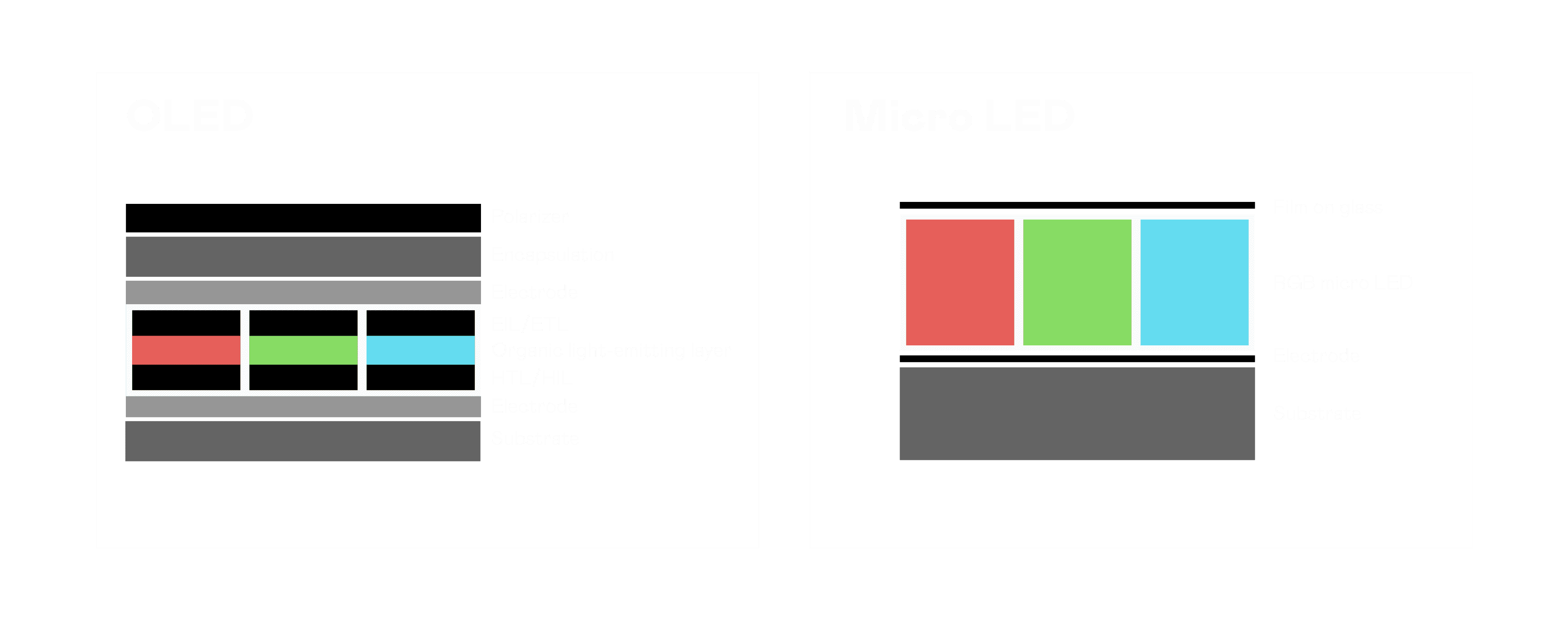 以 LED 做为显示画素,,,,可让 LED 的发光效率发挥到极致,,,从而让显示器具备优异的亮度表现,,不论是在户外或室内,,,均具备出众的显示效果。。。。同时,,,与使用有机材料的 OLED 相比,,,LED 具备更稳定、、寿命更长的特性,,,不仅不会有画面烙印问题,,,而且更不容易出现故障、、坏点。。。。