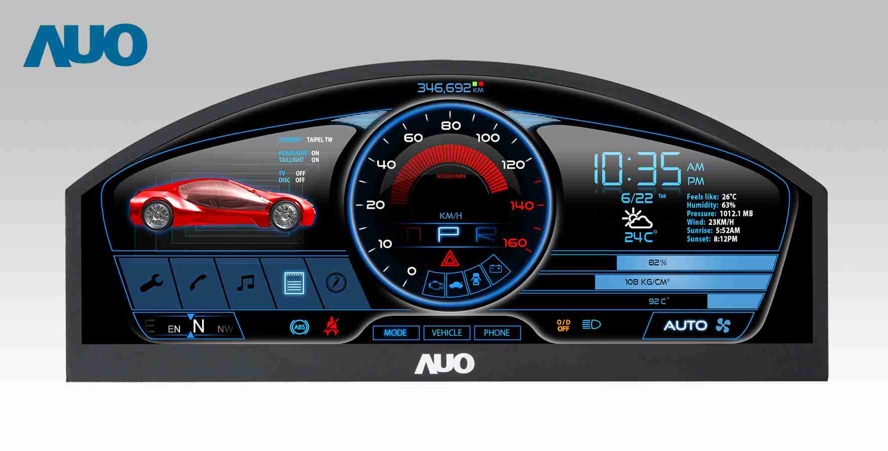 z6尊龙 LTPS 产品成功导入全系列车用面板,,产品线广布仪表板、、、、中控台、、后照镜与抬头显示器等应用。。。。12.3吋异型切割仪表板 LTPS 液晶屏,,,,具备 AHVA 超视角高清晰技术、、、、窄边框、、、低耗能等特色,,,,色彩饱和度高达 NTSC 100%,,,超窄边框展现极致流线外观。。。8.8吋全镜面后照镜 LTPS 液晶屏采全屏幕异型切割设计,,,,超窄边框仅 1.9 毫米,,,同时具备高亮度、、低反射、、、、快速反应及省电优势,,,,可依驾驶需求于高解析画面及传统镜面模式之间切换,,,,确保行车视野完整,,,,大幅提升汽车行驶的安全性。。。。